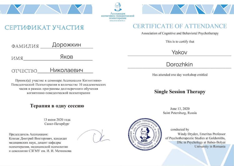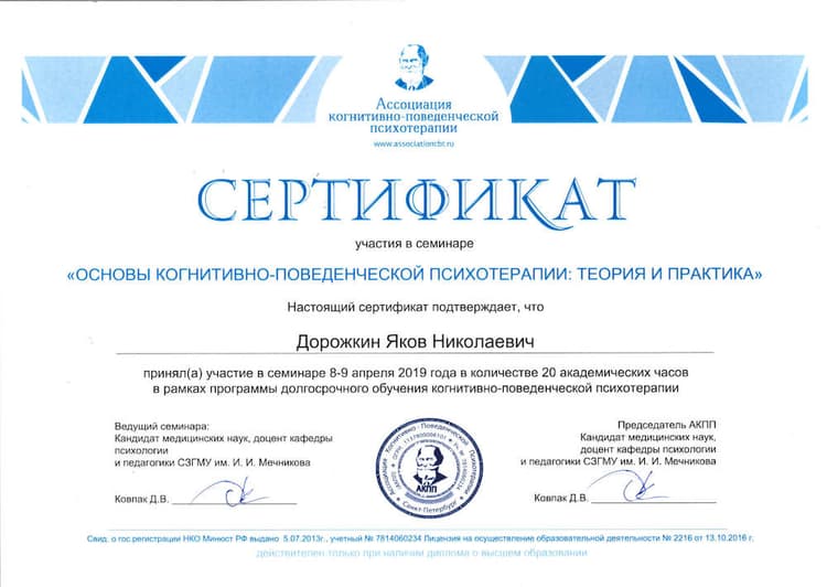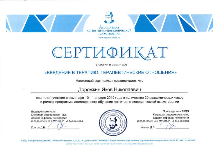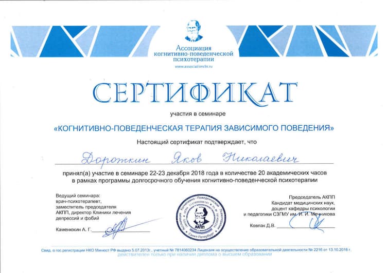 Яков Николаевич Дорожкин, 1960 года рождения, врач психиатр-нарколог, психотерапевт, автор программы On The Road. В 1987 году закончил лечебный факультет Московского медицинского стоматологического института имени Н. А. Семашко, получил диплом по специальности «врач, лечебное дело». Работал врачом скорой помощи. После повышения квалификации по наркологии, психиатрии, психотерапии начал работать врачом частной практики.